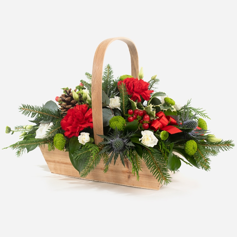 This Christmas classic features a selection of seasonal flowers and foliage expertly arranged