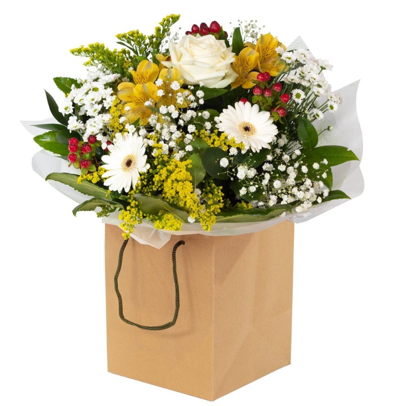 Warm up their holidays with this exquisite ensemble of festive flowers. Deliciously hand-crafted by a professional florist, this enchanting hand-tied promises to be a recipe for success this Christmas.